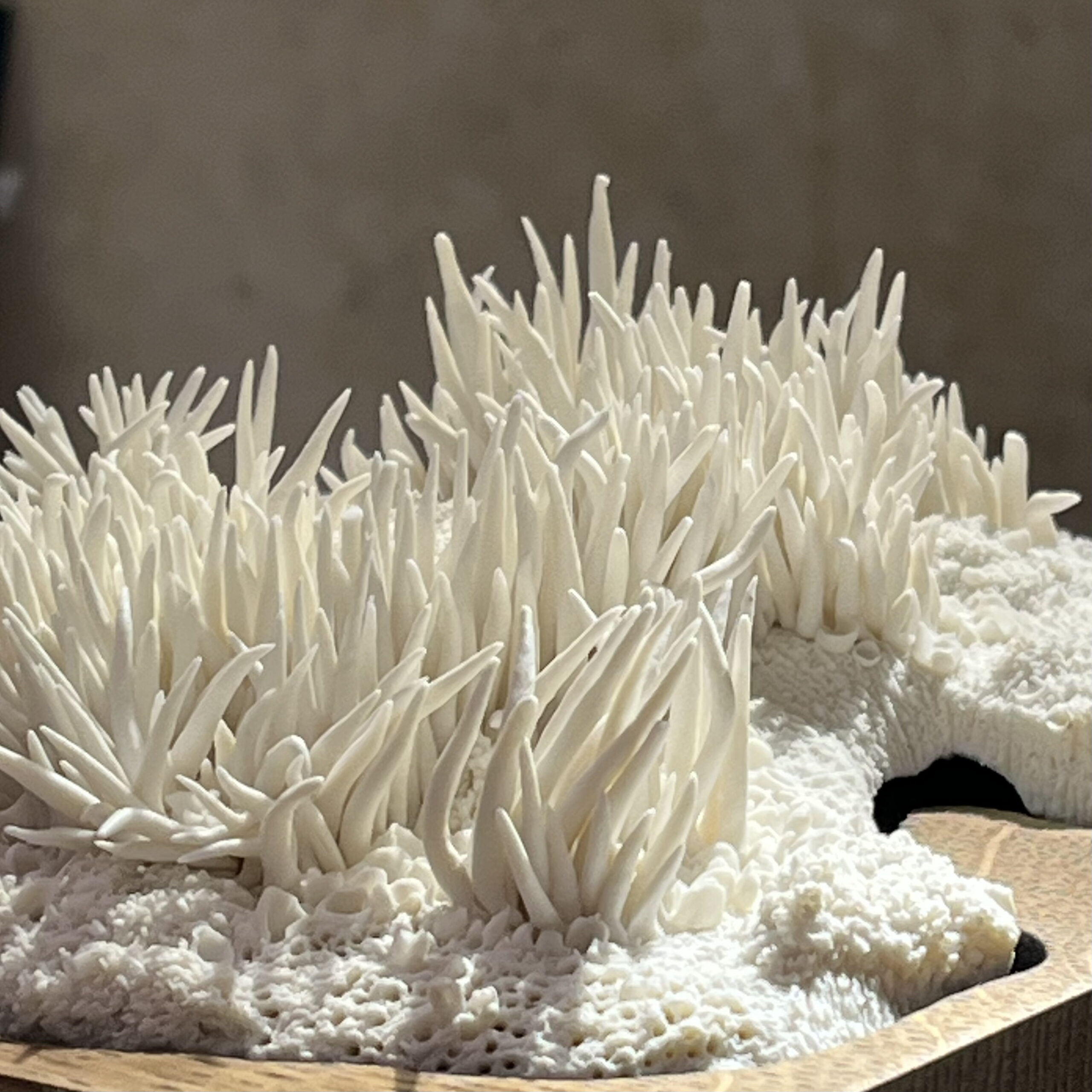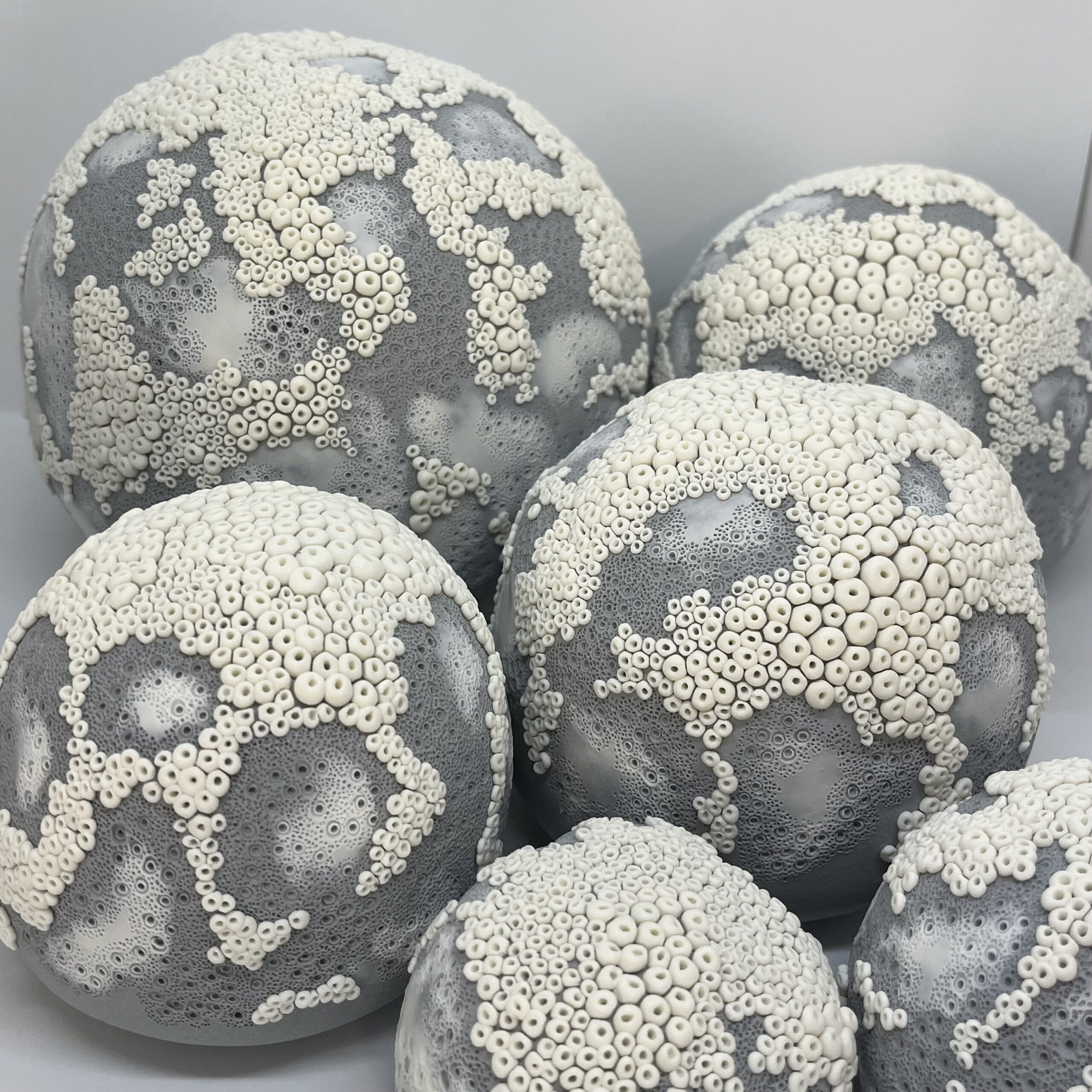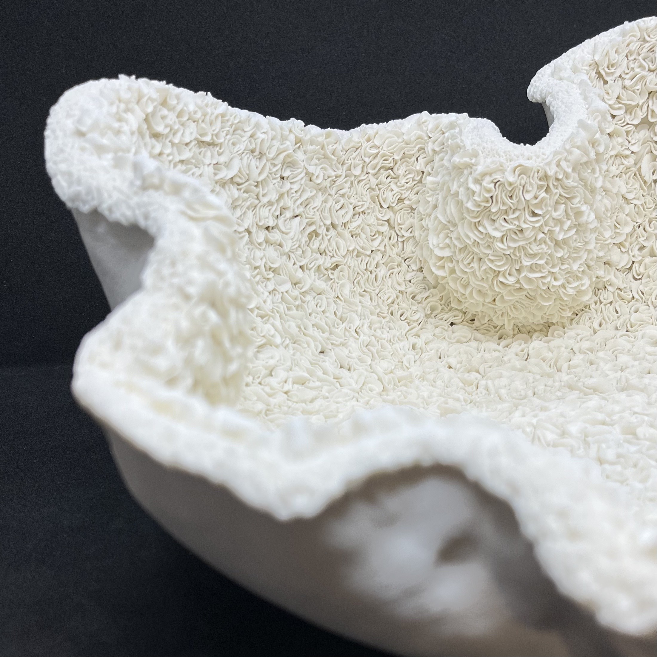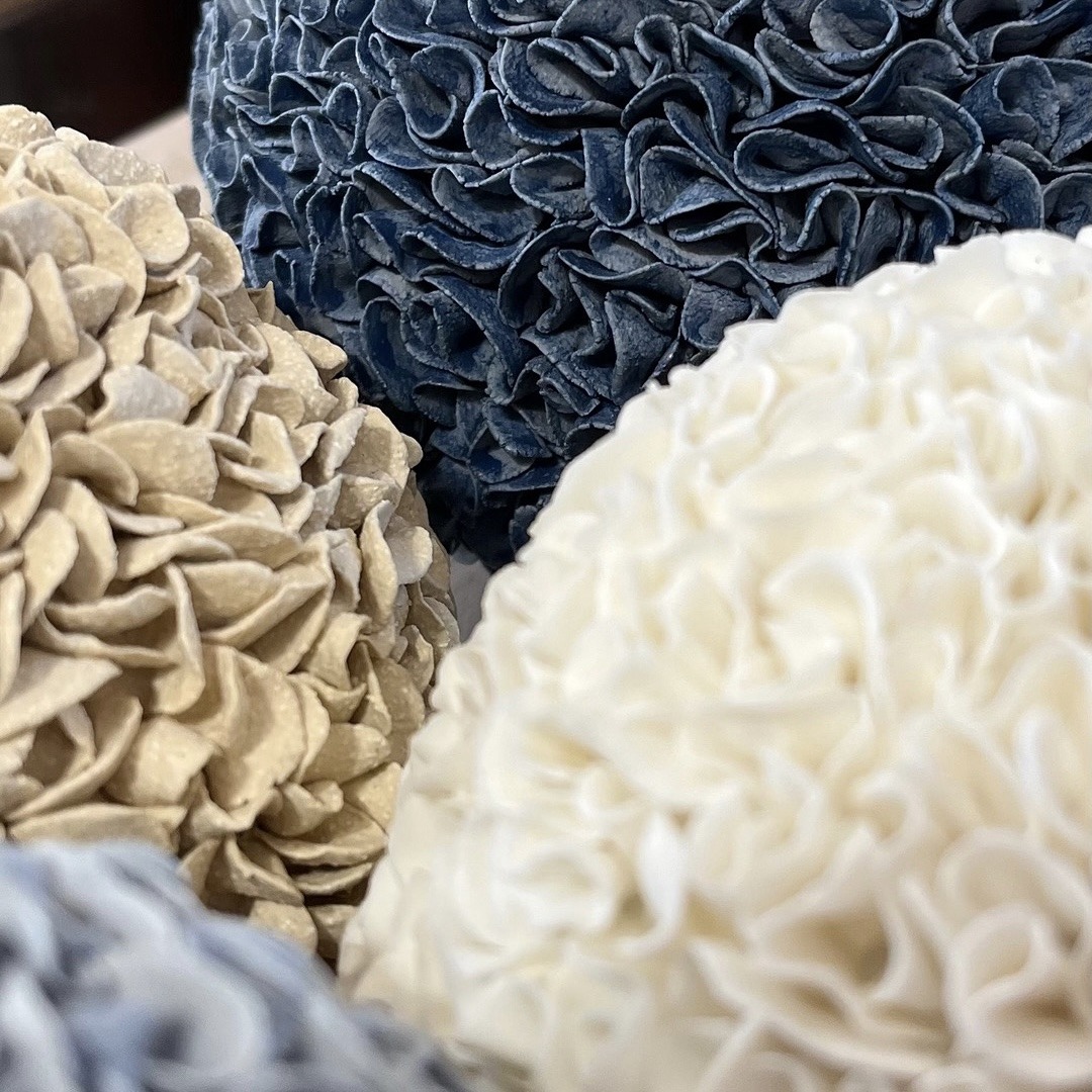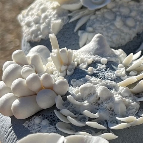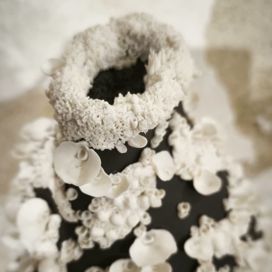 Je façonne la porcelaine pour sa blancheur, sa douceur, sa pureté et sa capacité à être travaillée tout en finesse. J’aime le grès pour son côté brut, ses teintes chaudes et naturelles. Je suis attachée aux formes organiques. Toutes mes sculptures sont des pièces uniques. La nature, les paysages qui m’accompagnent nourrissent mes rêveries dans des voyages imaginaires.
